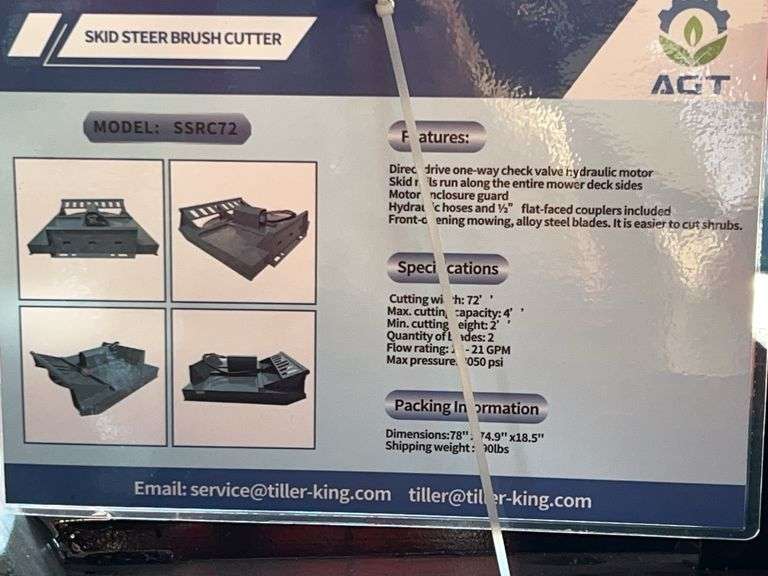 working width 77 in, Direct Drive Hydraulic Motor, Quick Attach, 790lbs. NOTE: GEAR BOX NEEDS OIL BEFORE USING